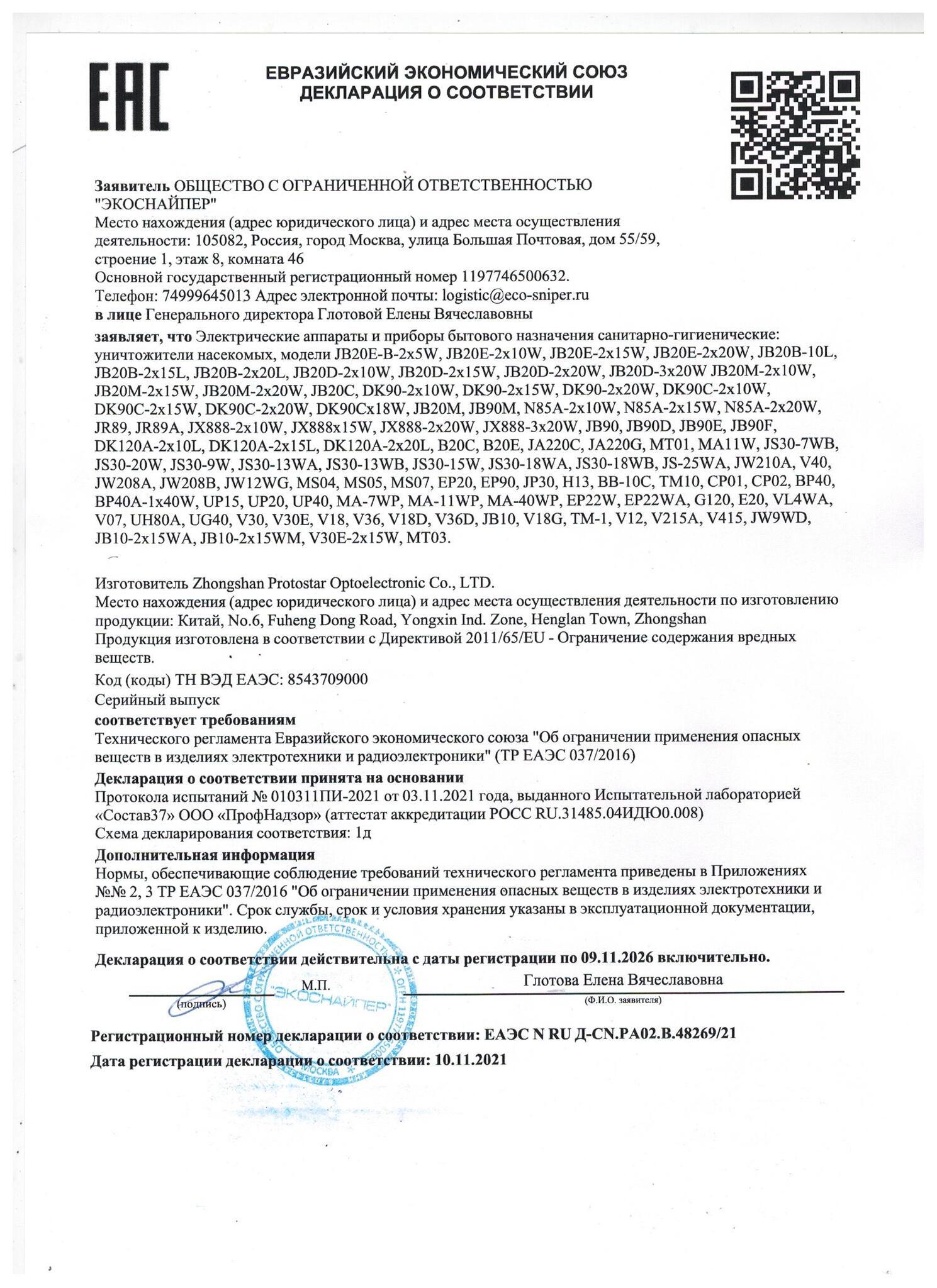 В онлайн-магазине «Отпугиватель.ком» вы можете приобрести лампу от комаров "Экоснайпер JB20C" по выгодной цене в Владимире, а также найти отзывы на данную модель.