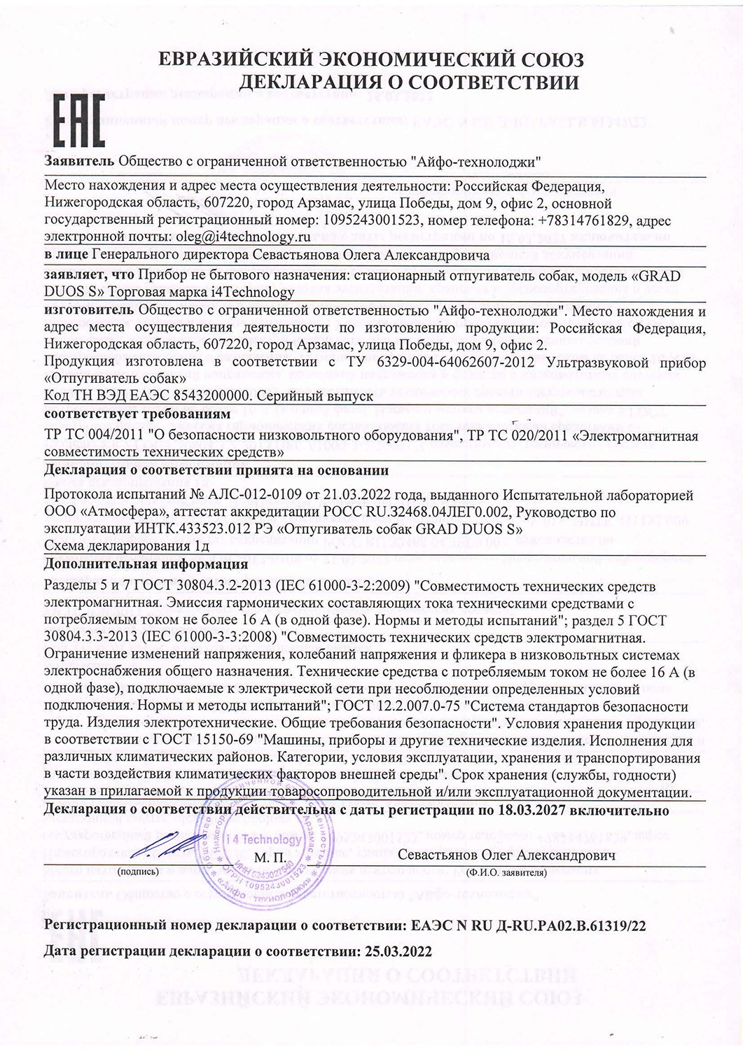 В нашем онлайн-магазине вы можете ознакомиться с отзывами на стационарный отпугиватель собак "Grad Duos S", а также приобрести данную модель по самой доступной цене в Владимире.