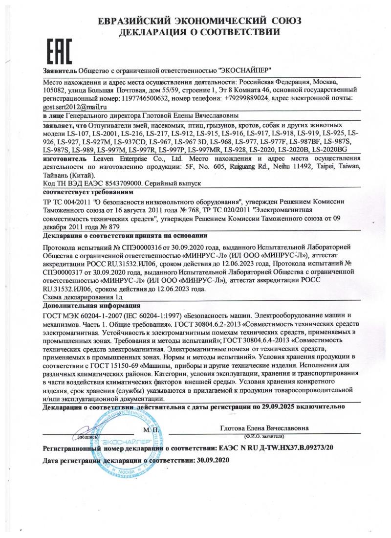 Отпугиватель «Экоснайпер LS-989»