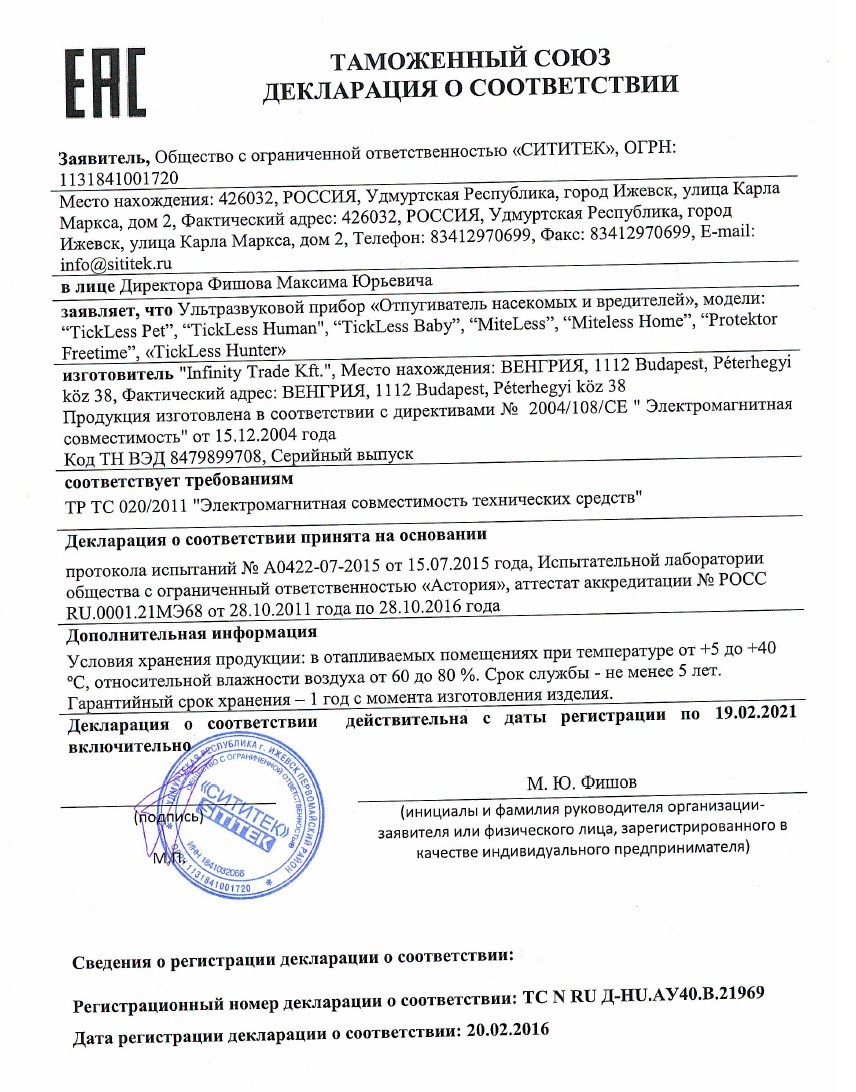 - Отпугиватель меняет частоту генерируемых ультразвуковых волн. Науке известно около 150 видов пылевых клещей. Данный генератор ультразвука меняет частоту и поэтому эффективен против всех клещей, которые могут обитать в жилом помещении.